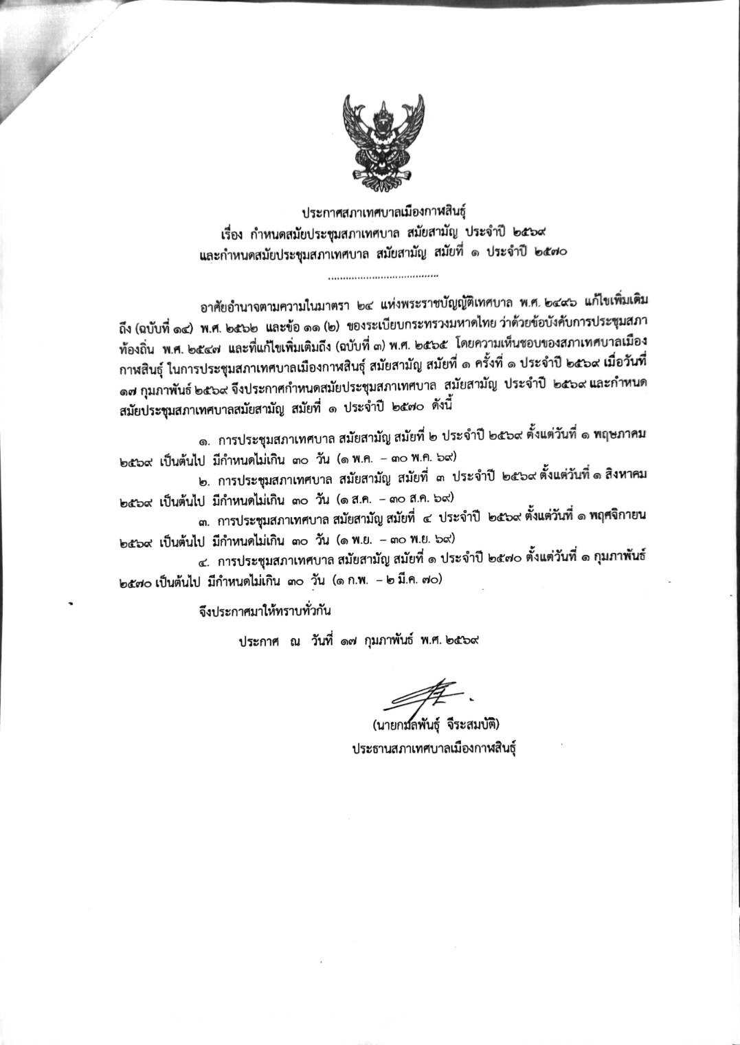 - ประกาศเทศบาลเมืองกาฬสินธุ์ เรื่อง ประกวดราคาจ้างก่อสร้างติดตั้งโคมไฟฟ้าแสงสว่างแบบ LED ขนาด ๑๕๐ w ถนนอนรรฆนาคด้วยวิธีประกวดราคาอิเล็กทรอนิคส์ Written on วันพฤหัสบดี, 19 กุมภาพันธ์ 2569 14:15