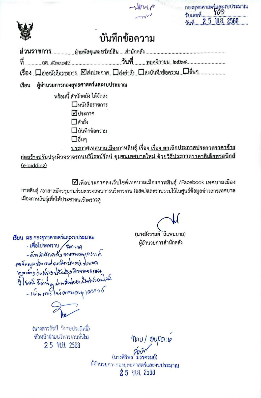 ประกาศเรื่องยกเลิกประกาศประกวดราคาจ้างก่อสร้างปรับปรุงผิวจราจรวิโรจน์รัตน์