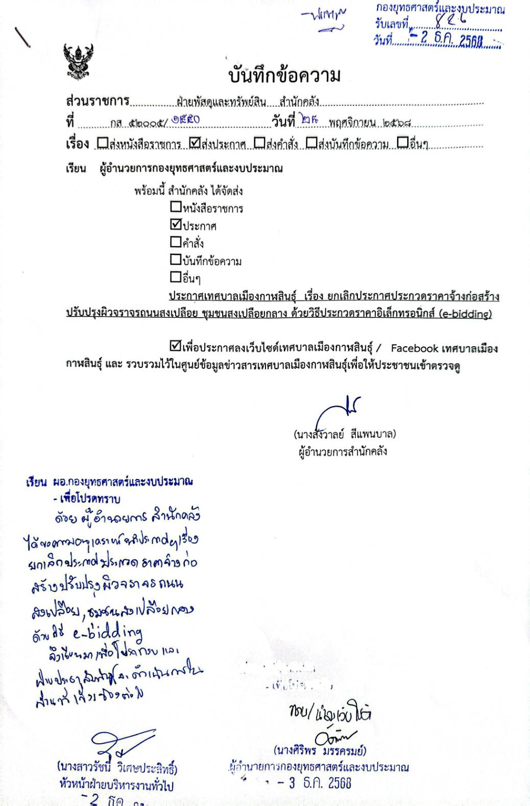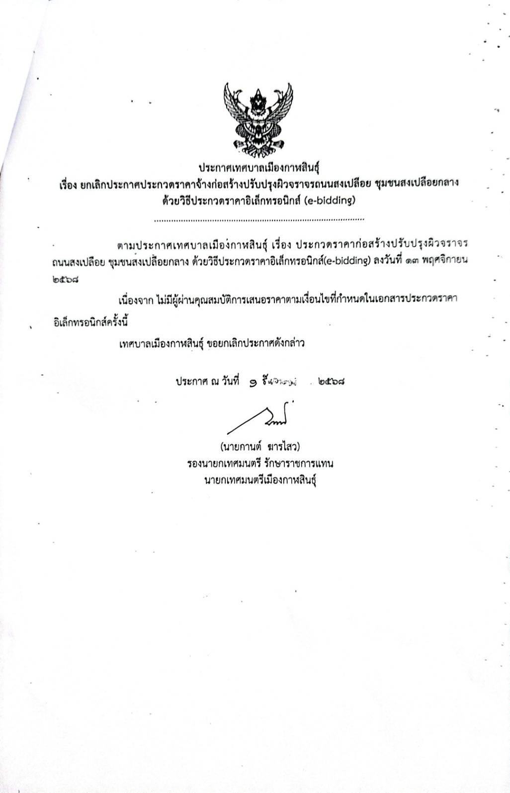 ยกเลิกประกาศประกวดราคาจ้างก่อสร้างปรับปรุงผิวถนนสงเปลือย