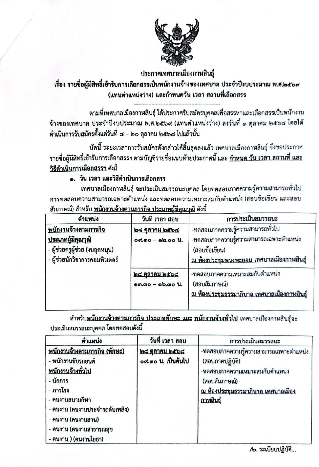 รายชื่อผู้มีสิทธิ์เข้ารับการคัดเลือกสรรเป็นพนักงานจ้างของเทศบาล ประจำปีงบประมาณ พ.ศ. 2568